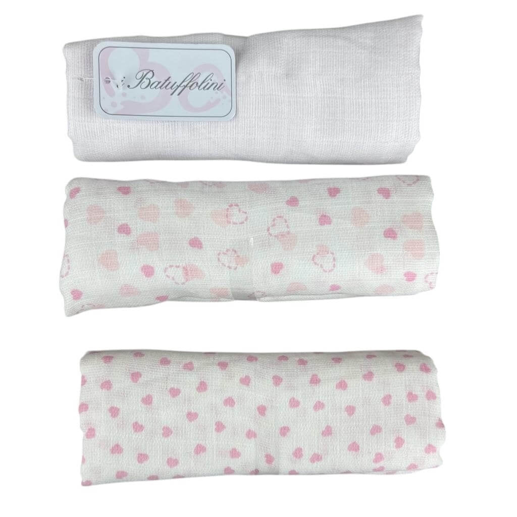 3 rosafarbene Musselintücher, geeignet für die ersten Lebenstage Ihres Neugeborenen