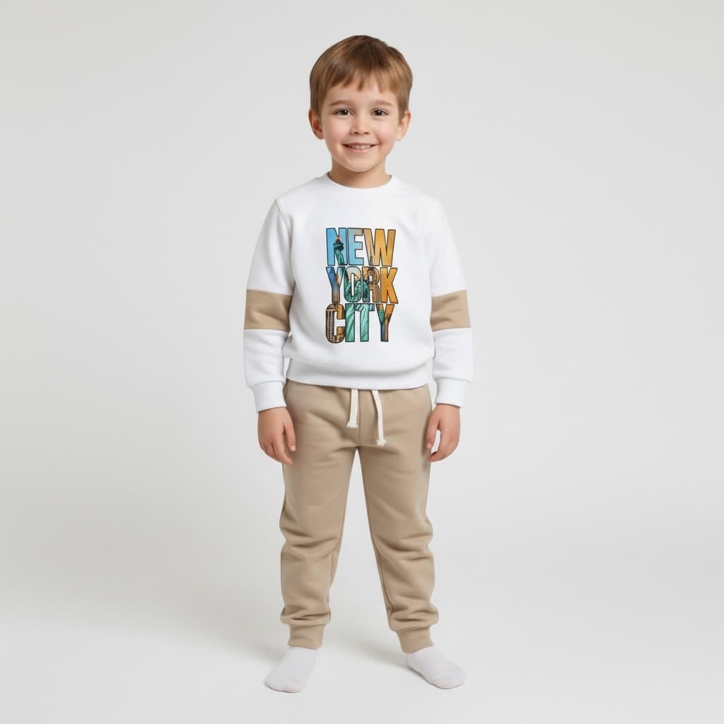 Comodo e alla moda, questo completo in cotone Made in Italy firmato Monello è pensato per garantire libertà di movimento e comfort durante tutta la giornata. La felpa a maniche lunghe con Stampa applicato e il pantalone a tuta offrono praticità e un look moderno, ideale per la scuola, il tempo libero e le giornate più fresche.