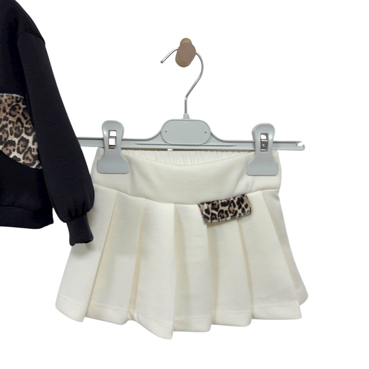 Gonna bianca a pieghe con dettaglio coordinato in stampa leopardata per un abbinamento perfetto.