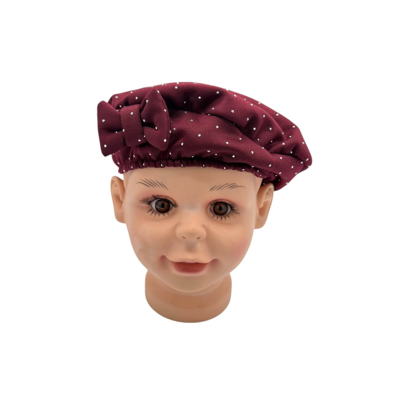 Modello a palloncino in tessuto bordeaux con micro pois bianchi. Ampia e comoda, permette piena libertà di movimento pur mantenendo uno stile elegante.