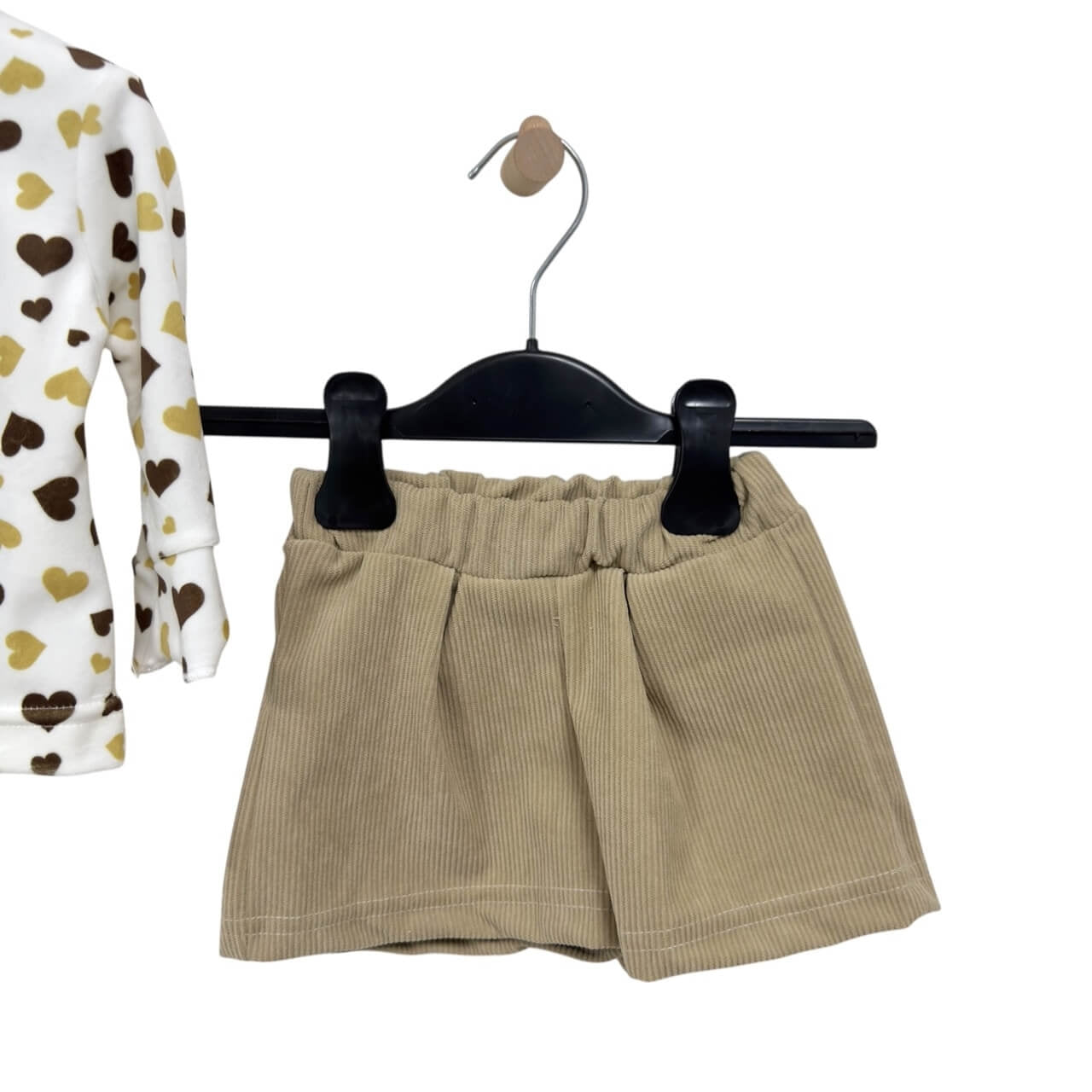• Shorts in velluto a costine color beige, con elastico in vita per una vestibilità perfetta e pratica