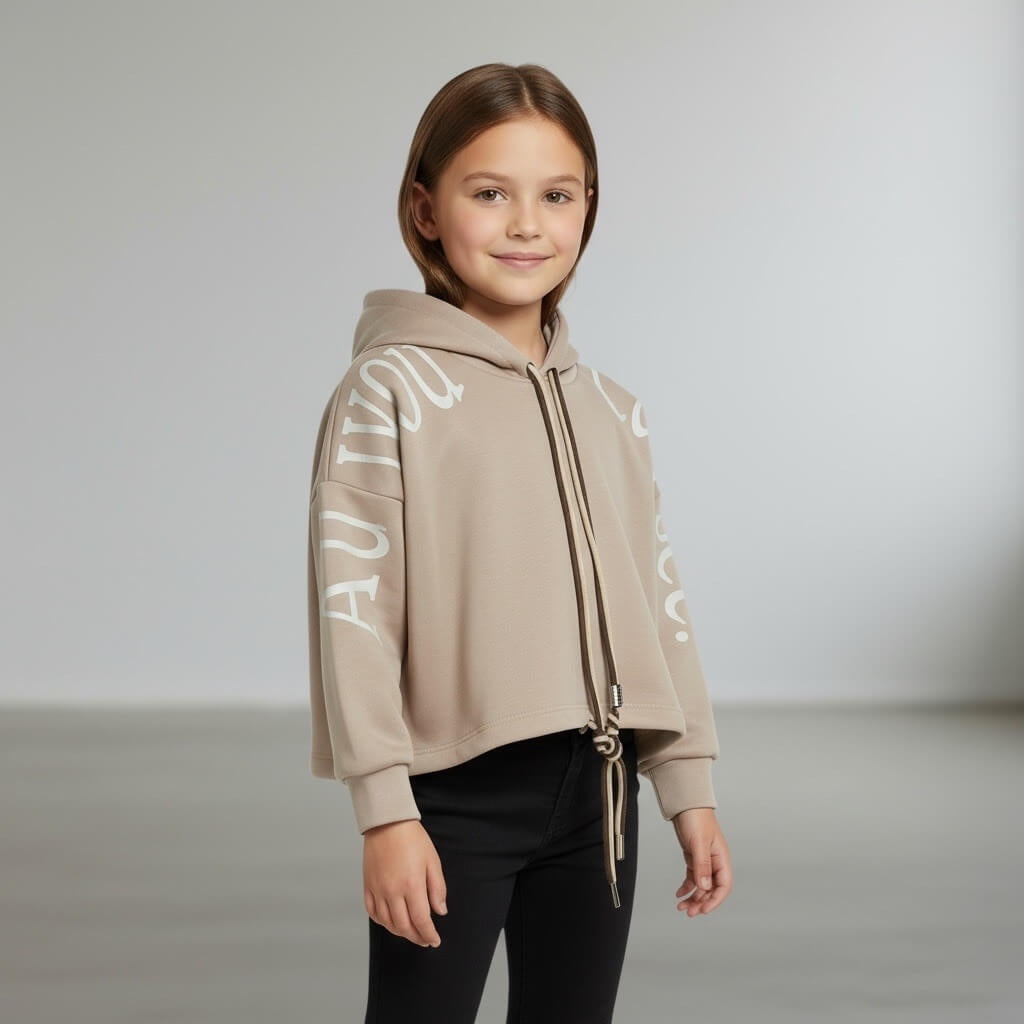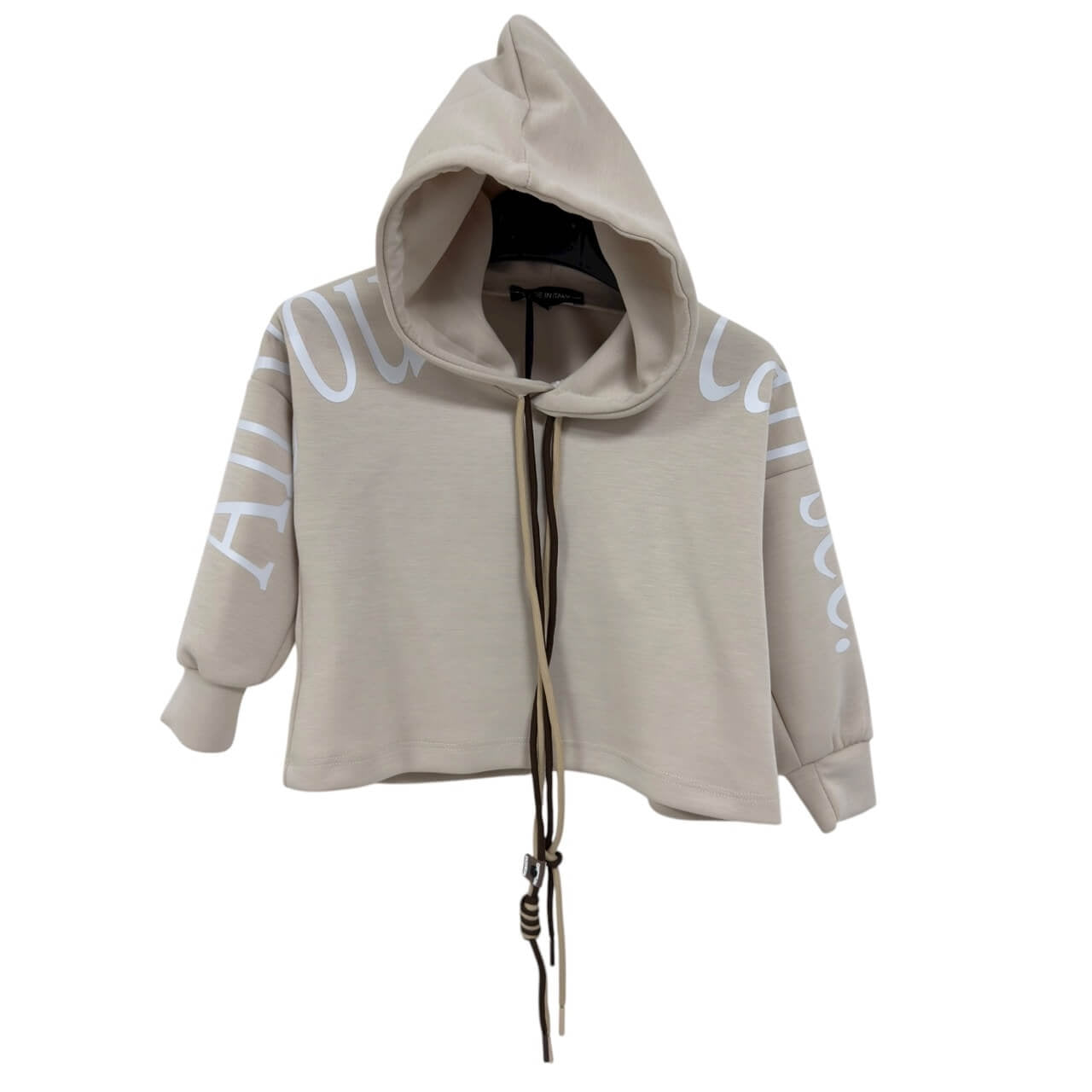 Felpa con cappuccio dal design moderno e confortevole, caratterizzata da scritte decorative sulle maniche che aggiungono un tocco di stile contemporaneo. Il modello presenta un taglio leggermente corto e coulisse regolabile sul davanti per una vestibilità personalizzata. Realizzata in tessuto tecnico morbido ed elastico (92% poliestere e 8% elastan), garantisce comfort e libertà di movimento per ogni momento della giornata.
