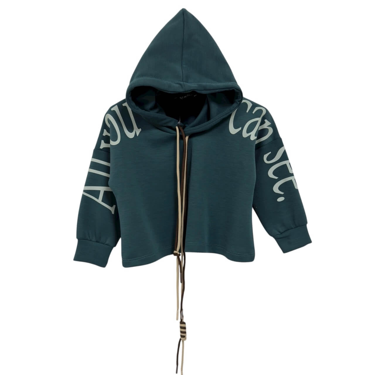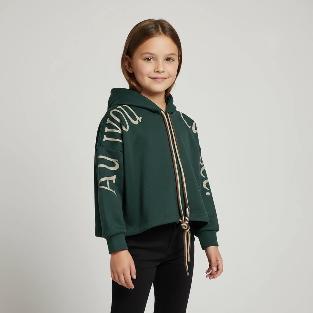 Felpa con cappuccio dal design moderno e confortevole, caratterizzata da scritte decorative sulle maniche che aggiungono un tocco di stile contemporaneo. Il modello presenta un taglio leggermente corto e coulisse regolabile sul davanti per una vestibilità personalizzata. Realizzata in tessuto tecnico morbido ed elastico (92% poliestere e 8% elastan), garantisce comfort e libertà di movimento per ogni momento della giornata.