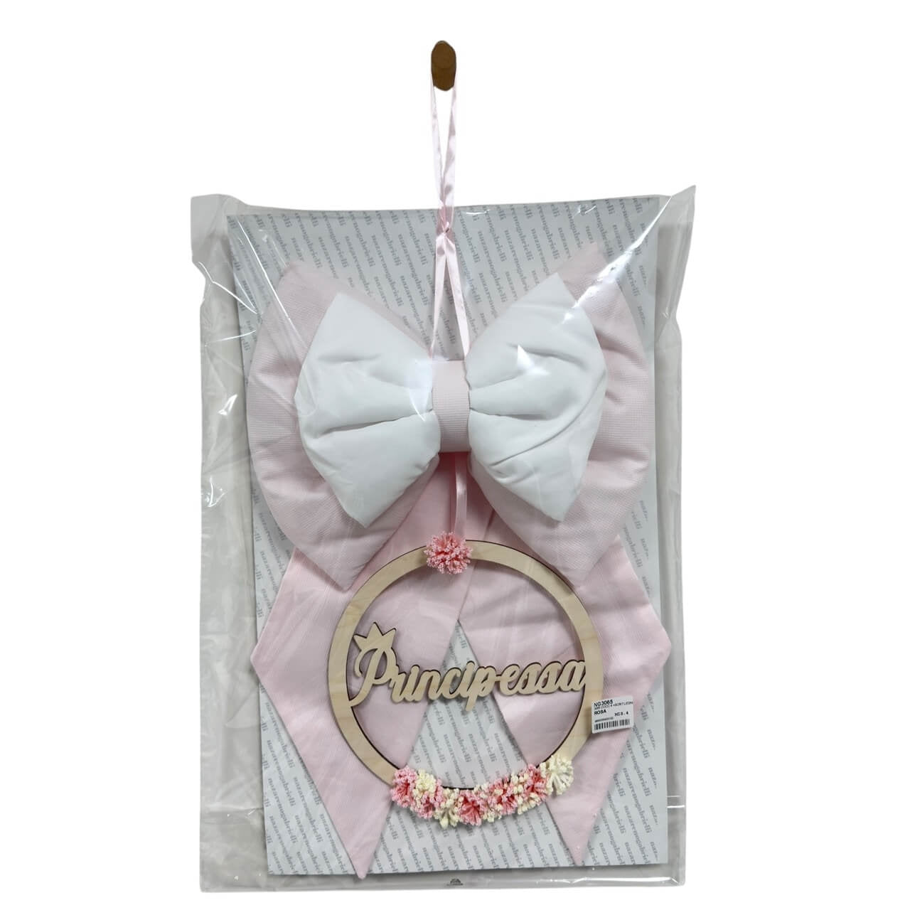 Con una dimensione di 70 cm in altezza e 50 cm in larghezza, è perfetto da appendere alla porta di casa o nella cameretta, aggiungendo un tocco di tenerezza e stile al momento più speciale.