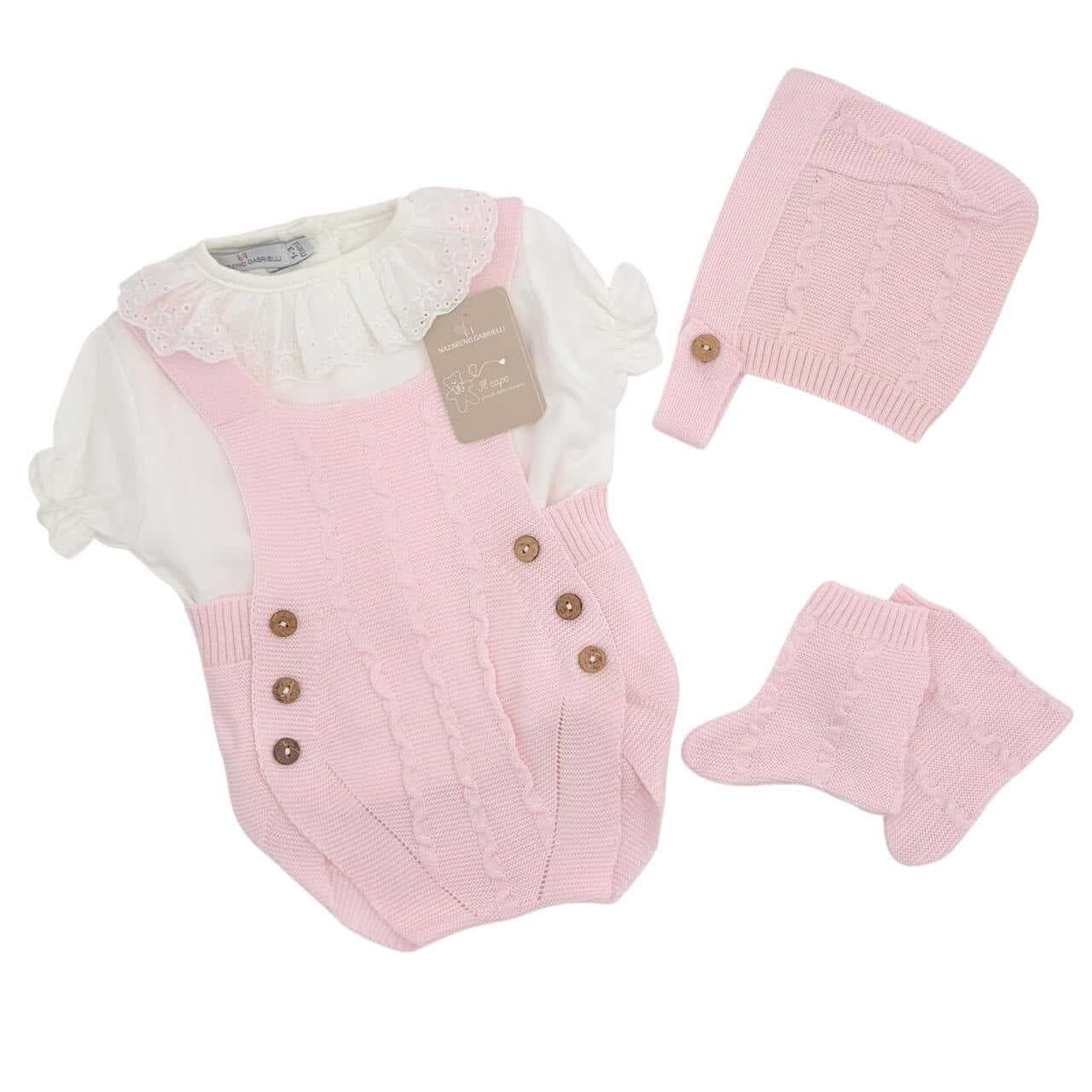 Ideale come outfit da cerimonia, regalo nascita o corredino, questo completo unisce stile, qualità e morbidezza, garantendo massima comodità al bebè.