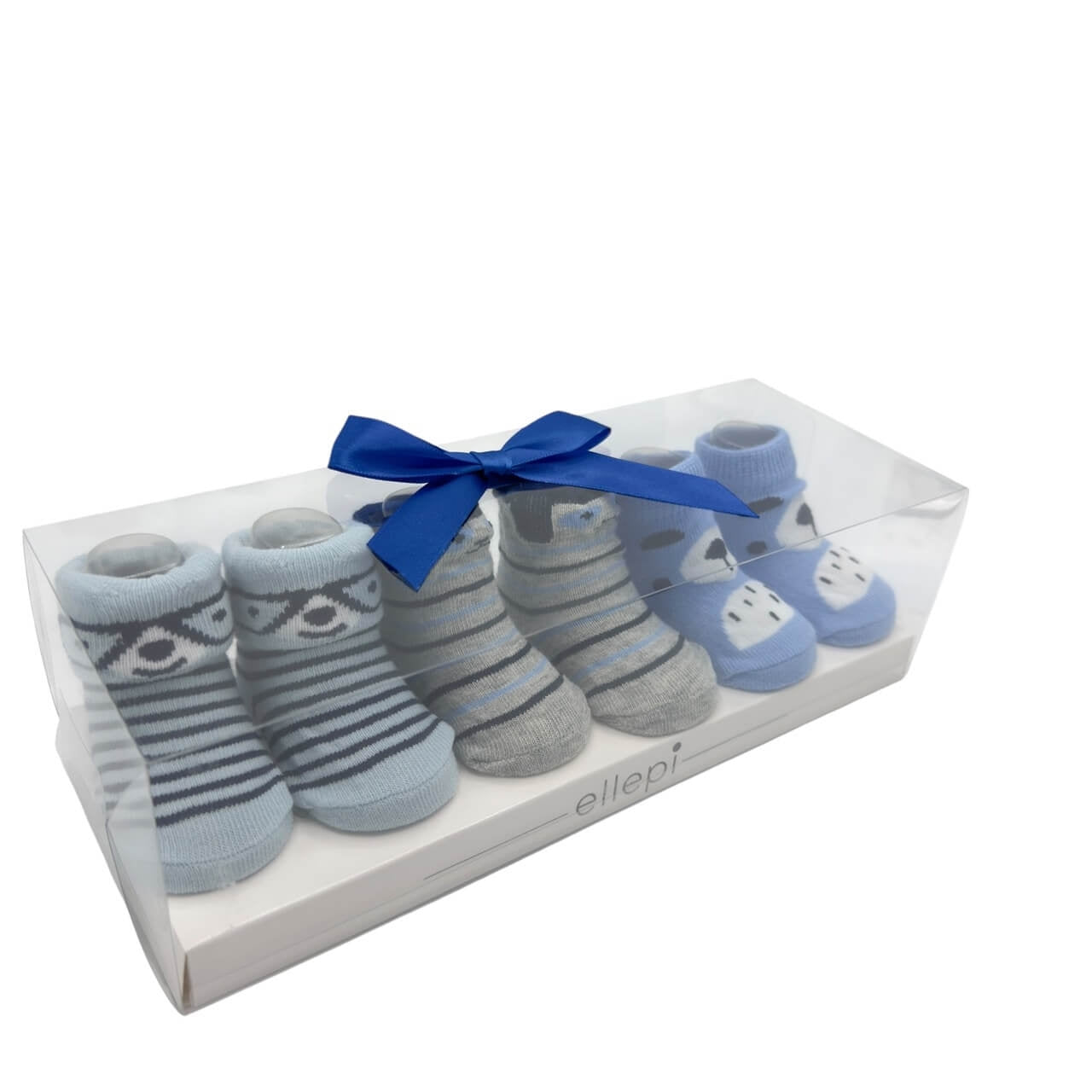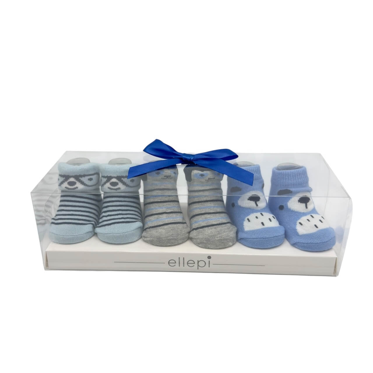 Set composto da 3 paia di calzini firmati Ellepi, ideali per neonati da 0 a 6 mesi.
