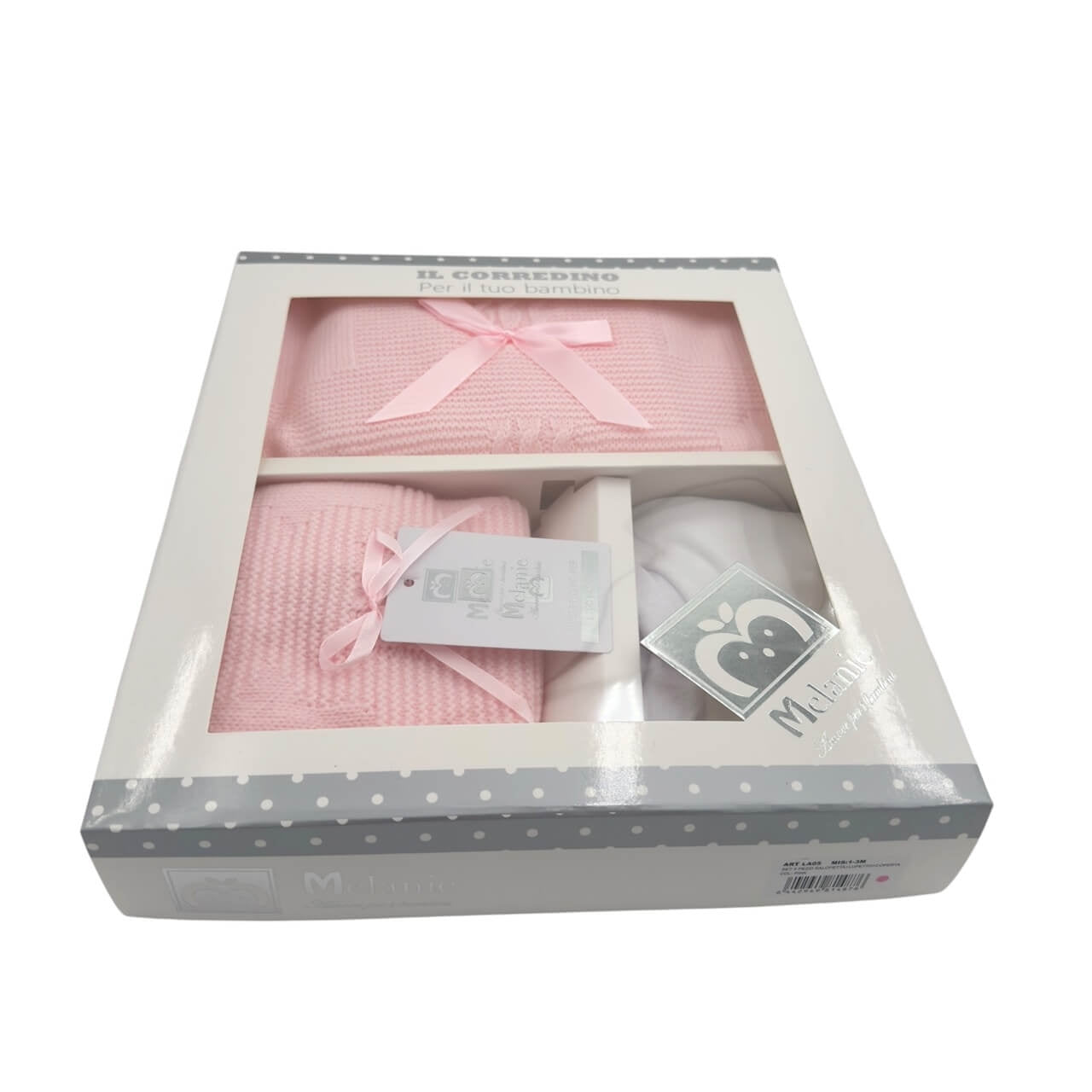 Set corredino elegante e pratico, ideale per i primi mesi del bambino. Realizzato in morbido tessuto acrilico, è composto da: