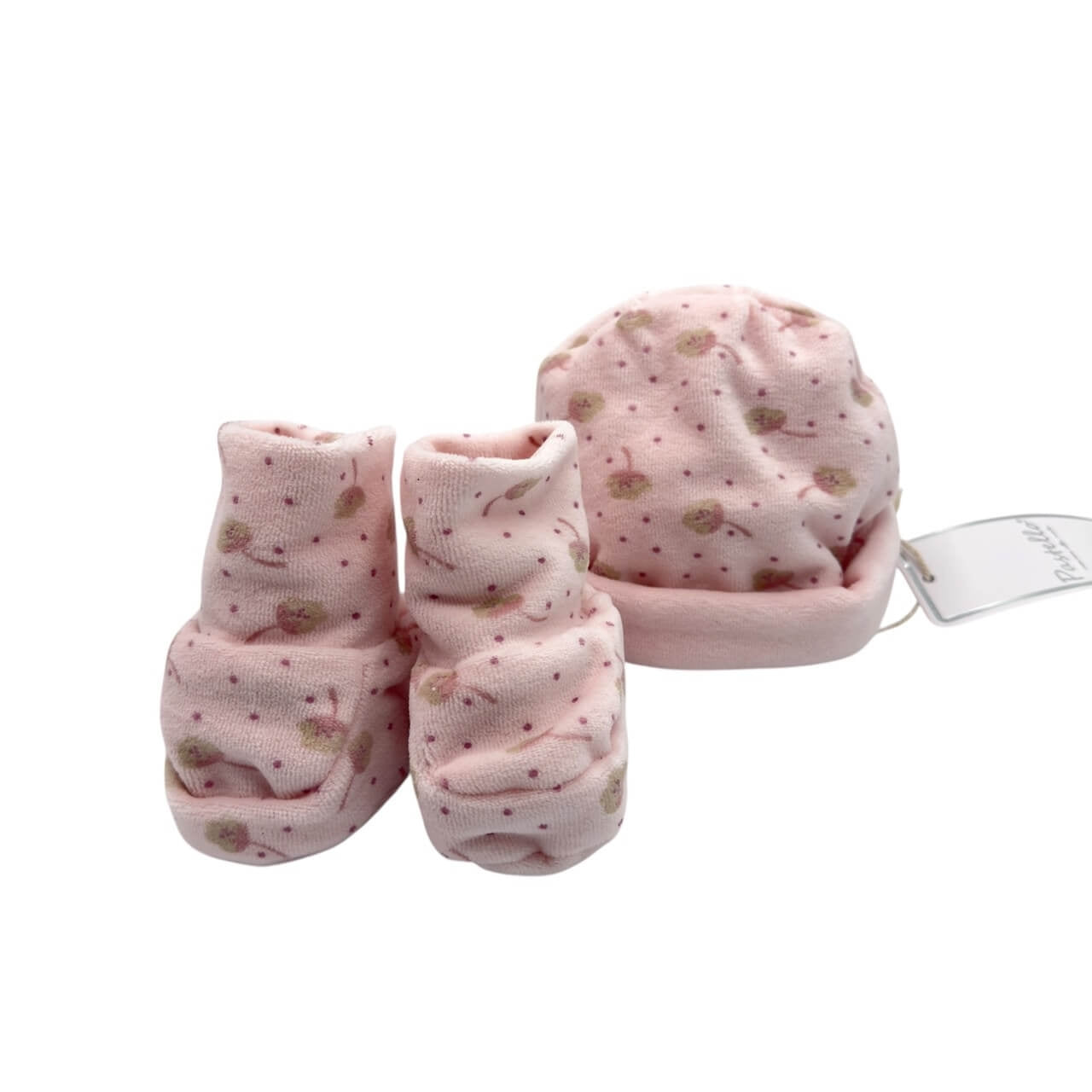 Questo set cappello e scarpe in ciniglia del marchio Pastello è perfetto per i primi mesi del tuo bambino. Realizzato in morbido tessuto anallergico composto da 80% cotone e 20% poliestere, assicura comfort e delicatezza sulla pelle sensibile del neonato.