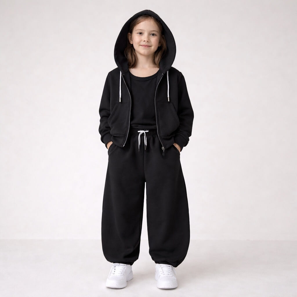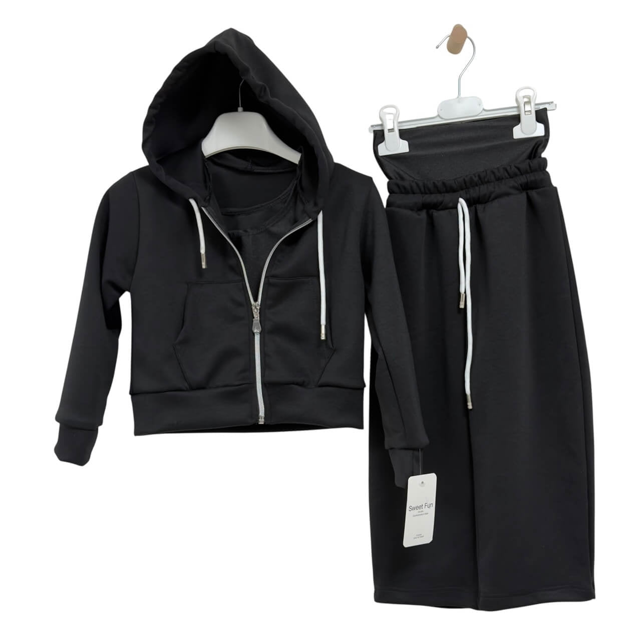 Tuta in Cotone 3 Pezzi - Bimba Con Cappuccio e zip