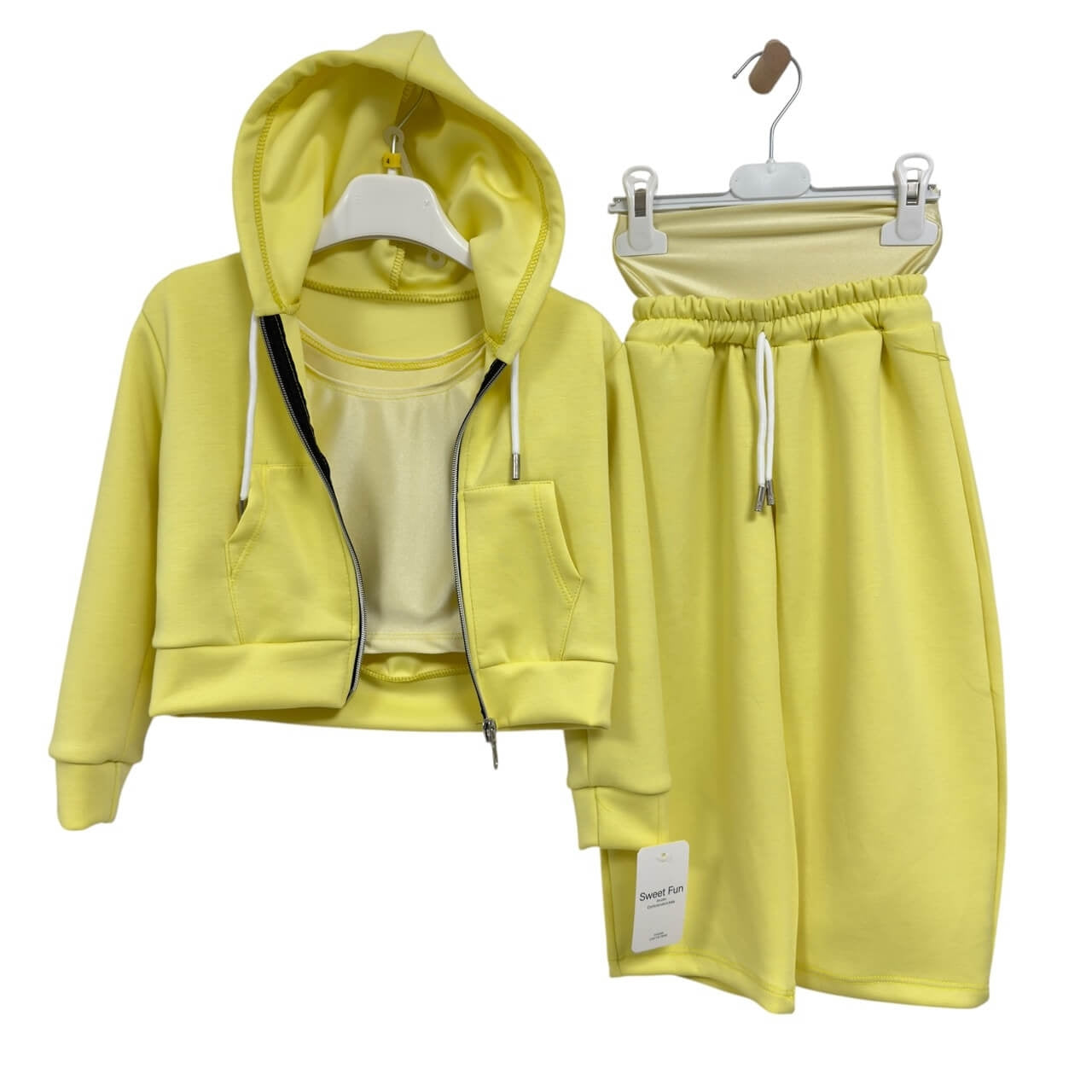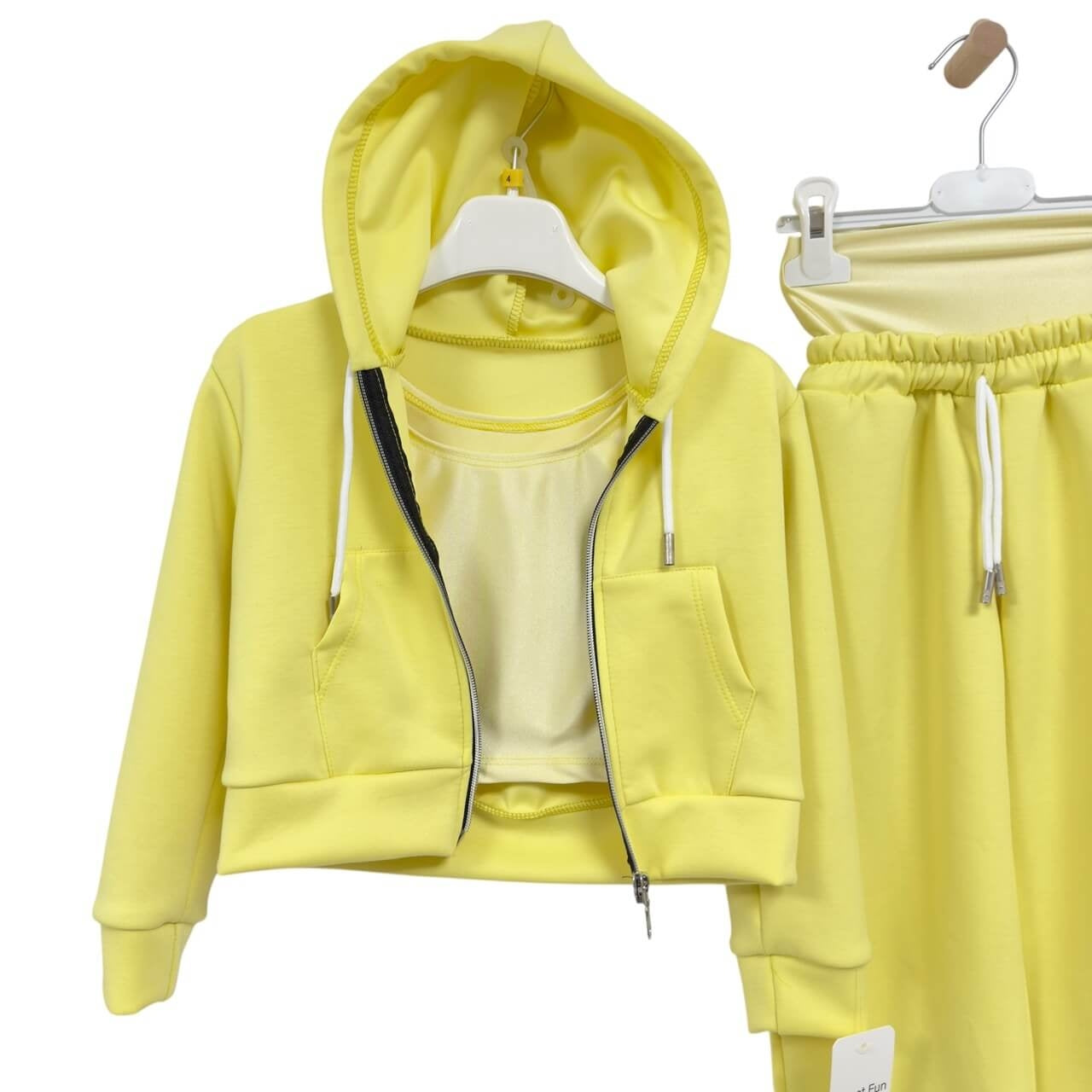Tuta in Cotone 3 Pezzi - Bimba Con Cappuccio e zip